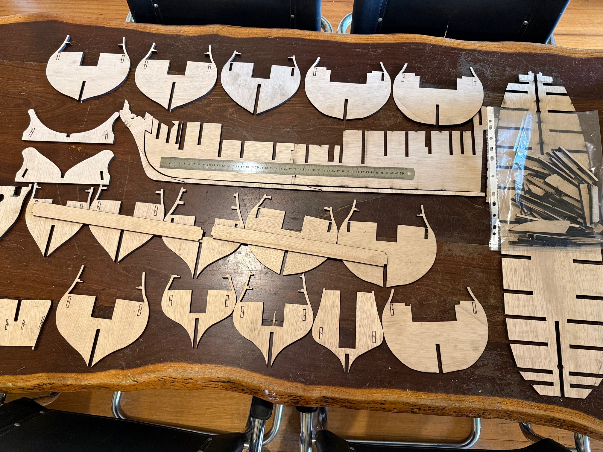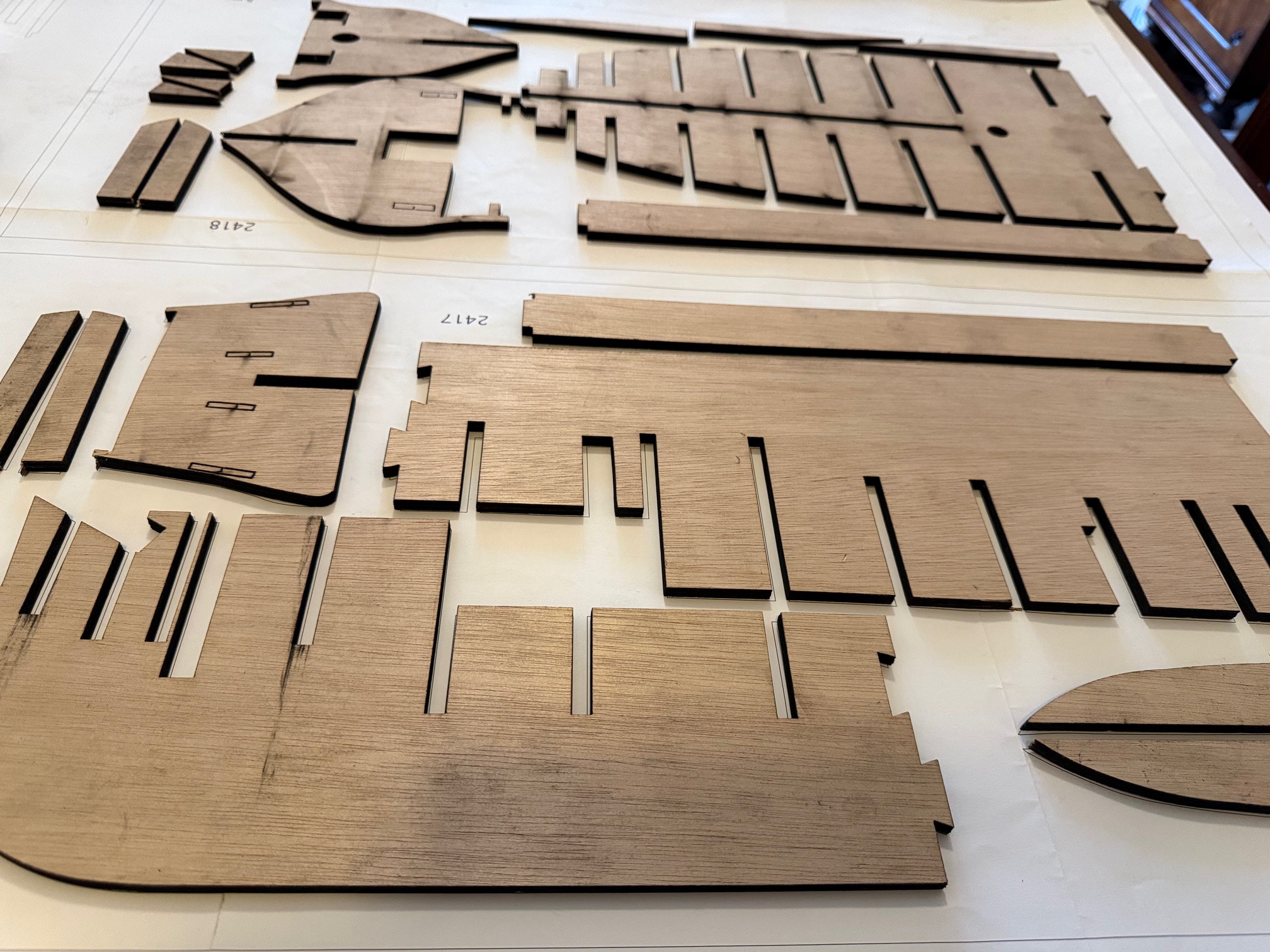 Then I decided to have the keel, bulkheads, decks etc laser cut. I do have a scroll saw, and considerable wood working experience, but the speed and accuracy of laser cutting was persuasive.