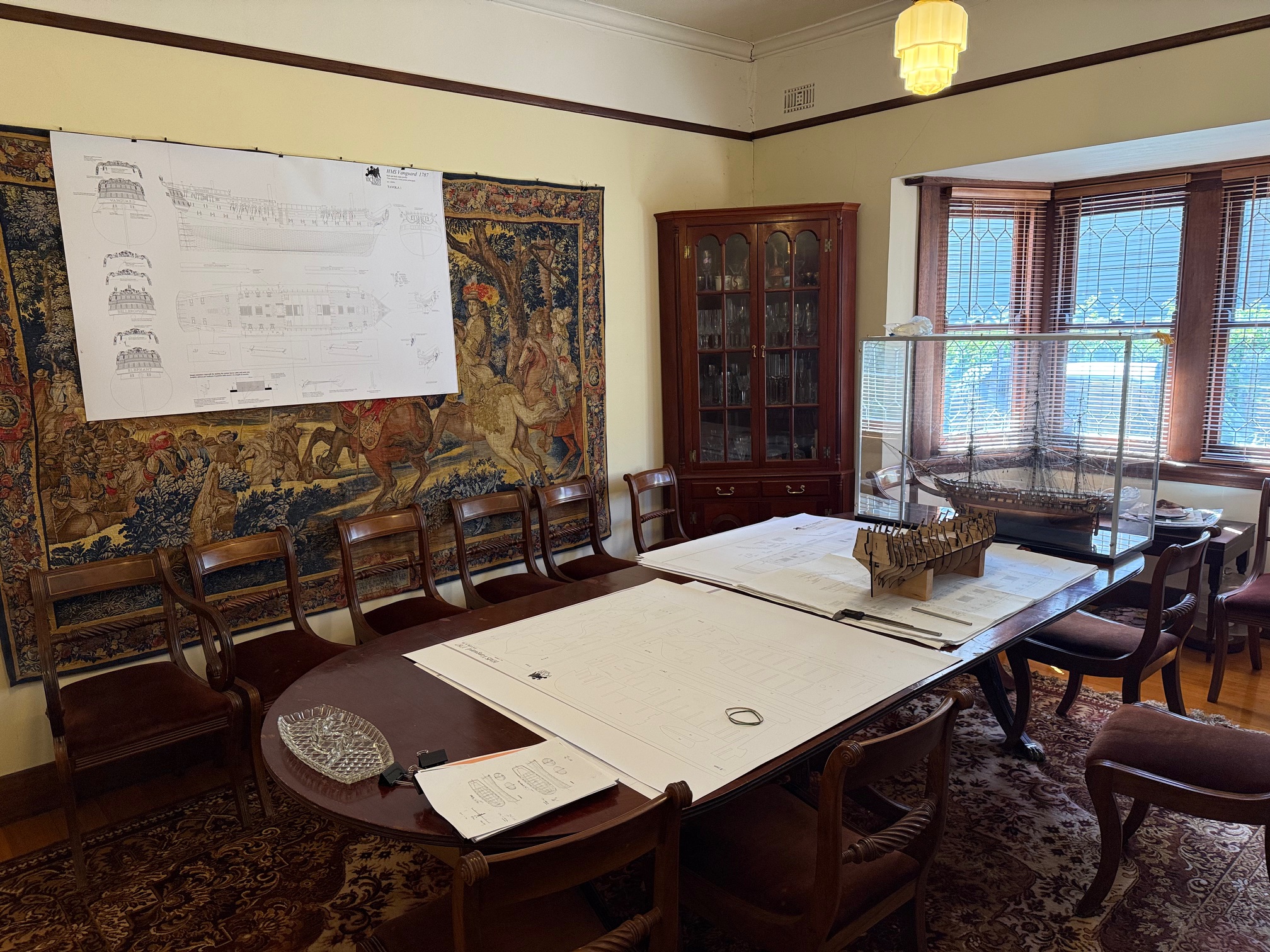ps. The “tapestry” on the wall is actually a painting of “The Battle of Brugues” with Louis XIV on horesback. The original,I believe is in the Louvre. Makes a handy place to locate the main lateral plan of the Vanguard/Bellerophon for quick reference. Louis XIV will reappear eventually.