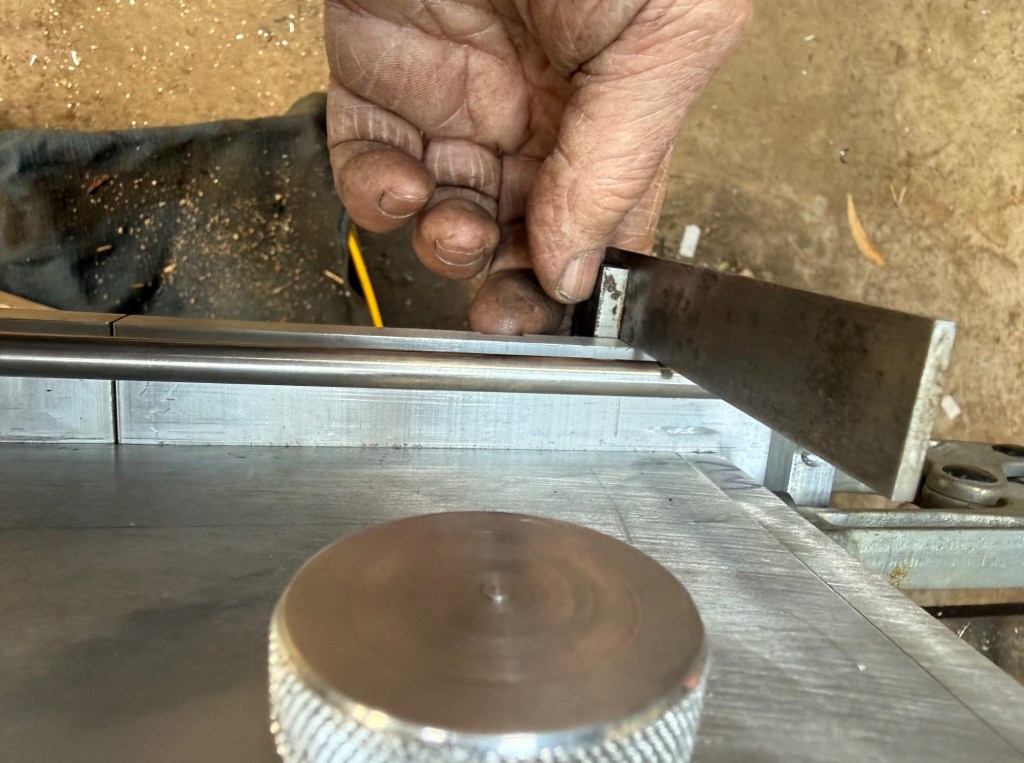 The accuracy of this fitting is crucial for the accuracy of the saw. The 8mm rods at each end of the saw table must be as close to exactly parallel to each other as possible, particularly the distance from each other, and the squareness to the saw blade and the machined channels in the table top. And the table top itself must be as square as possible.