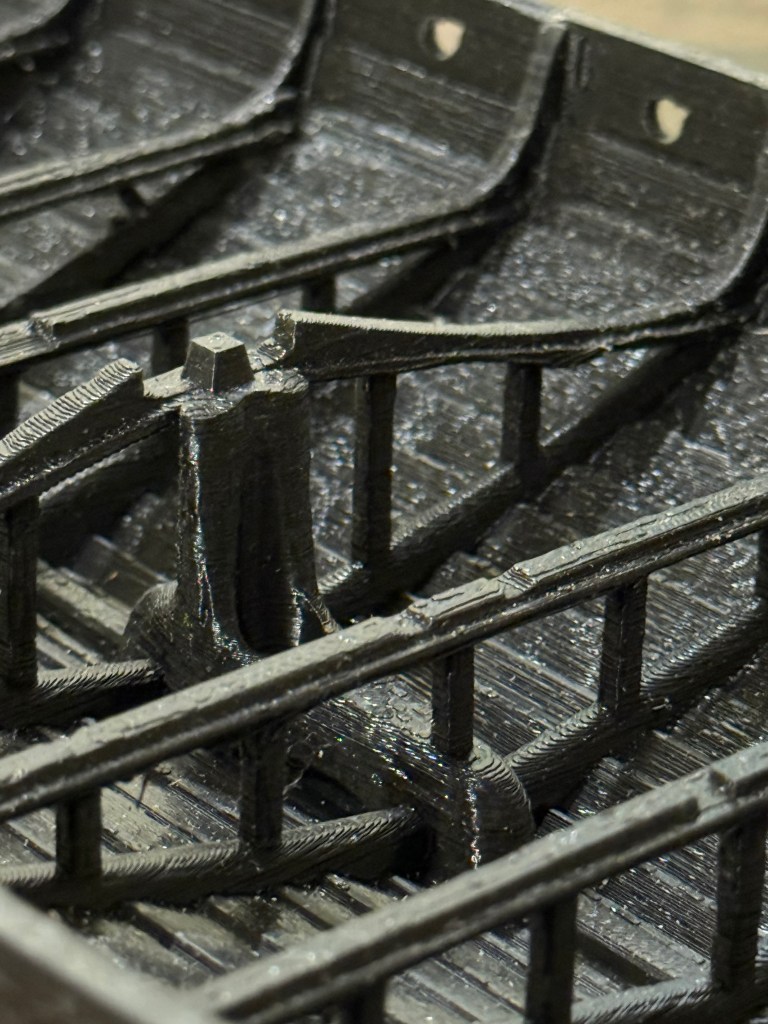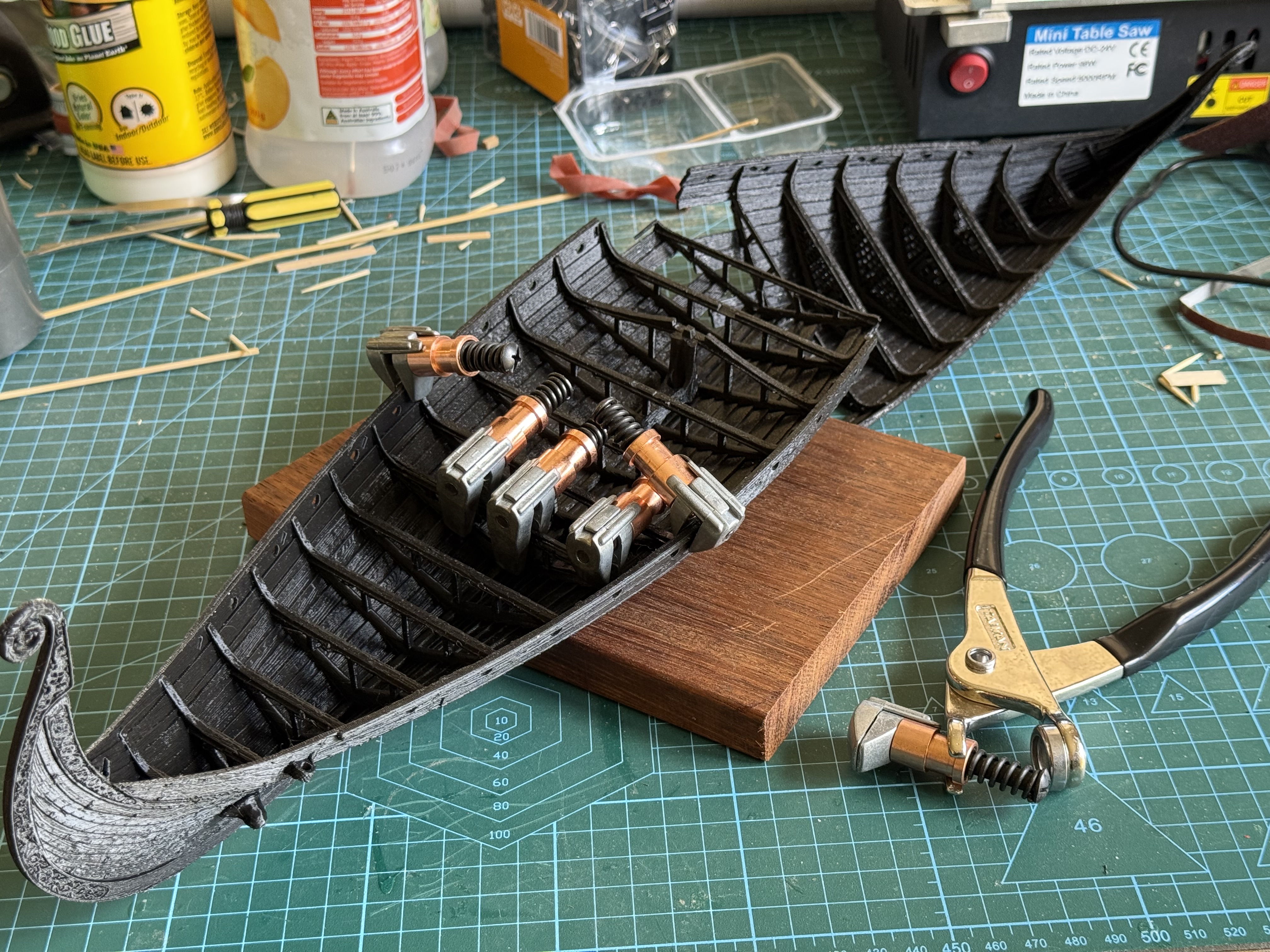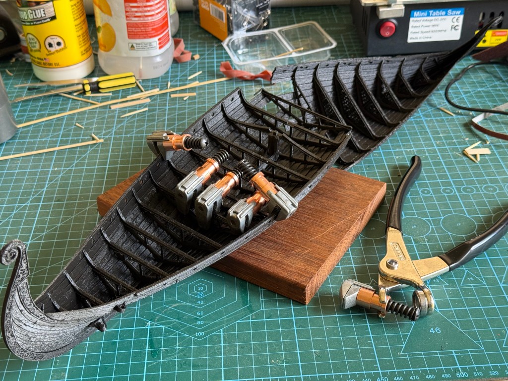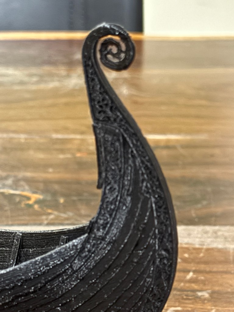 Then, inexplicably, I found a New Zealand site which was advertising Black Friday deals on their 3D printed files of scary figurines and monsters etc, I explored their offerings and found a model of the Viking ship Oseberg, which I liked the look of, and purchased. Then spent a weekend printing the hull and assembling it.