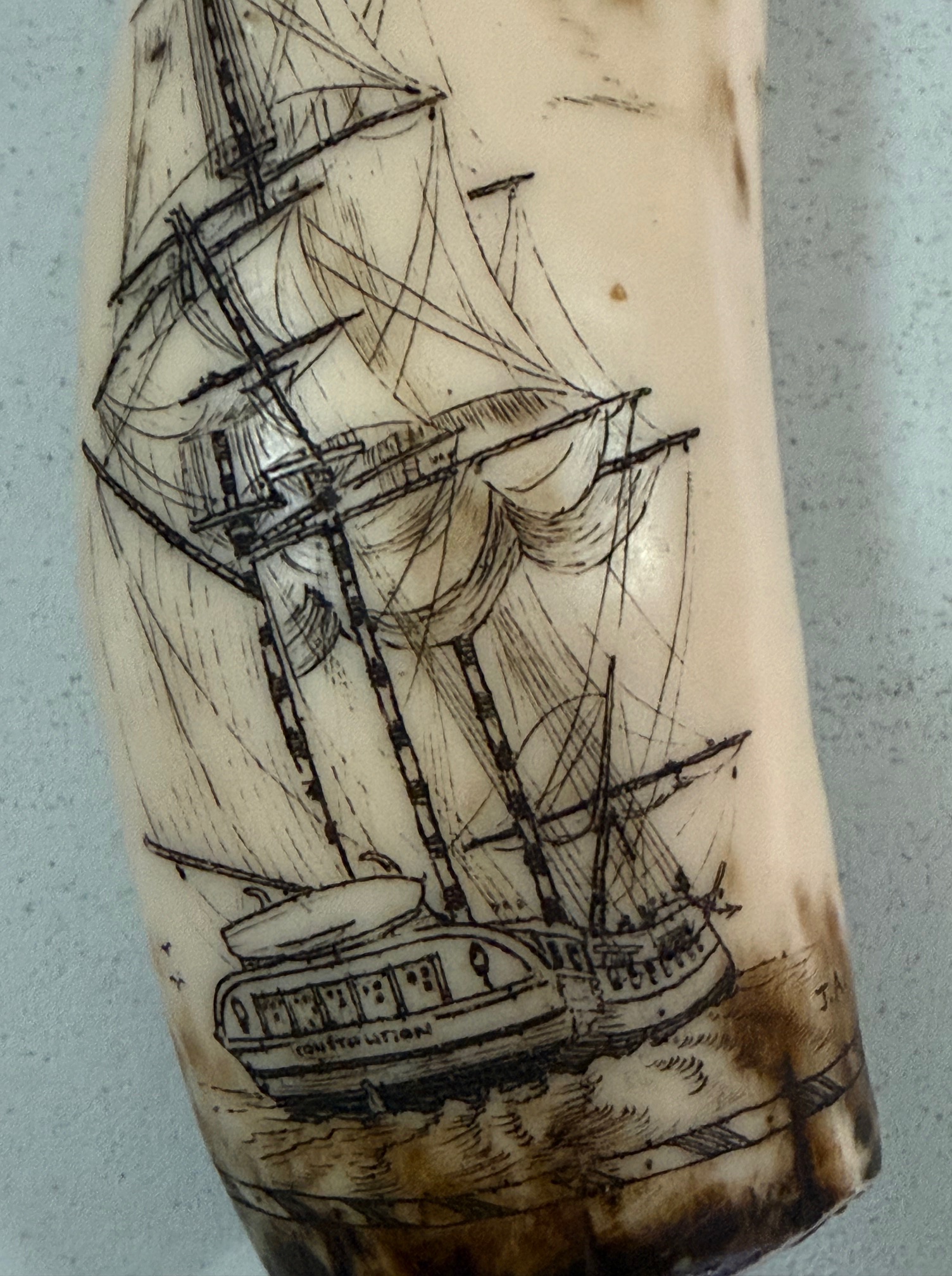 USS Constitution Scrimshaw