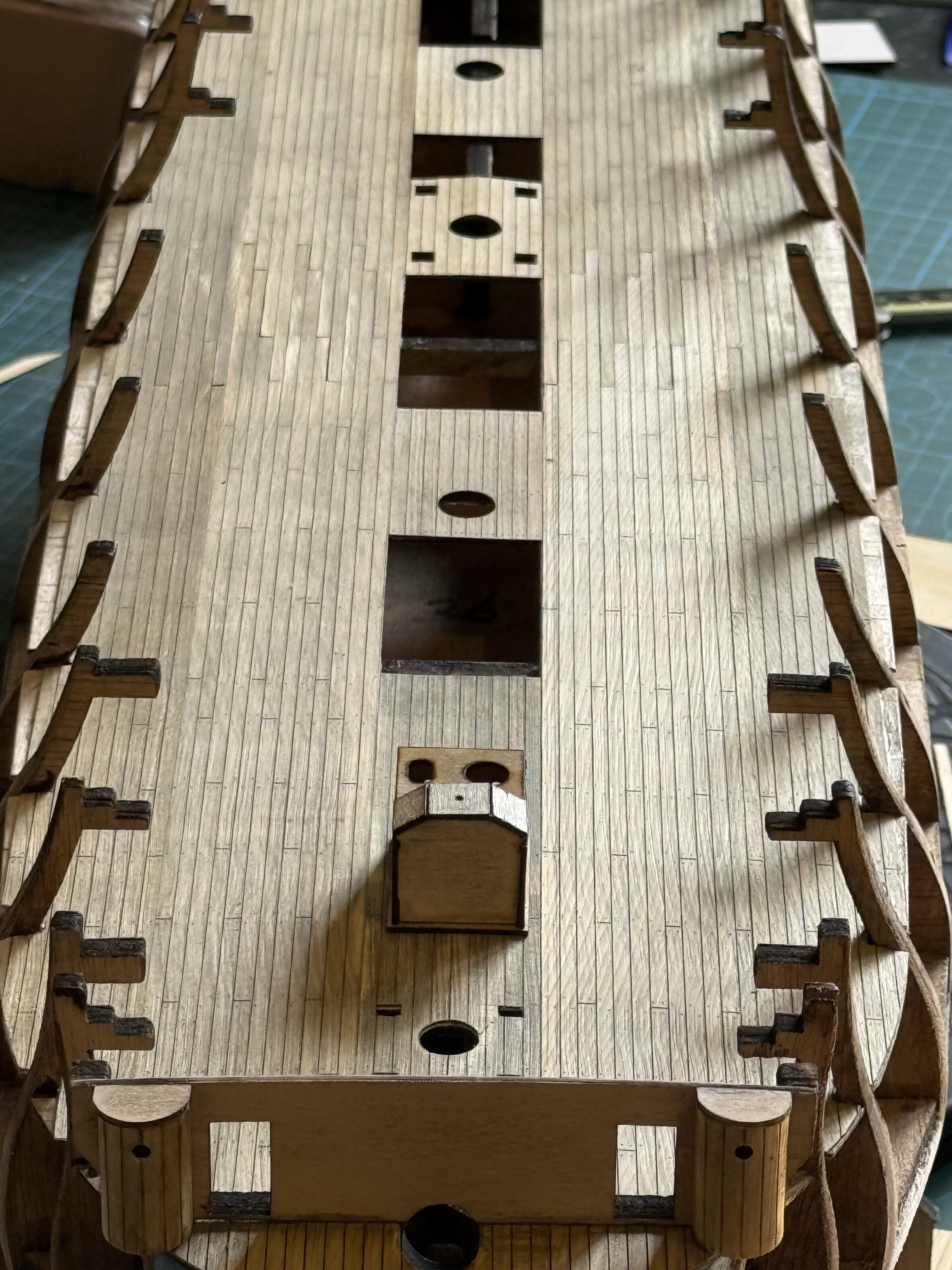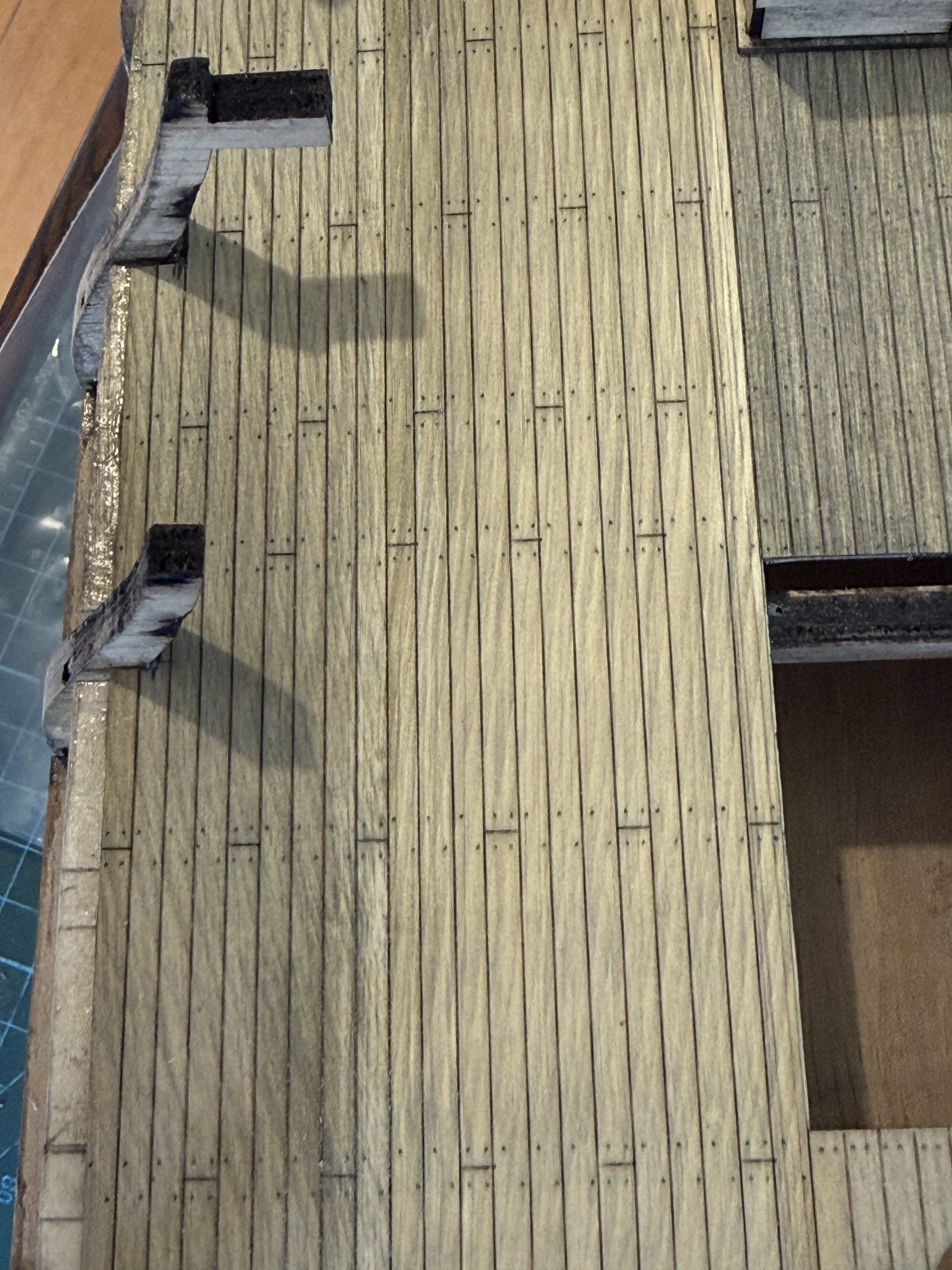 Bellerophon -9 Stain-> Glue-> Finish deck planks.