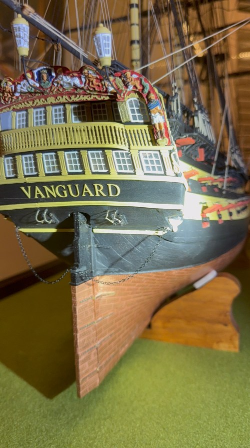 You will notice the marvellous detail in the stern decorations of his Vanguard. To see further photos of his Vanguard go to “Ships of Scale” website and do a search for Vanguard Models Chestcutter.