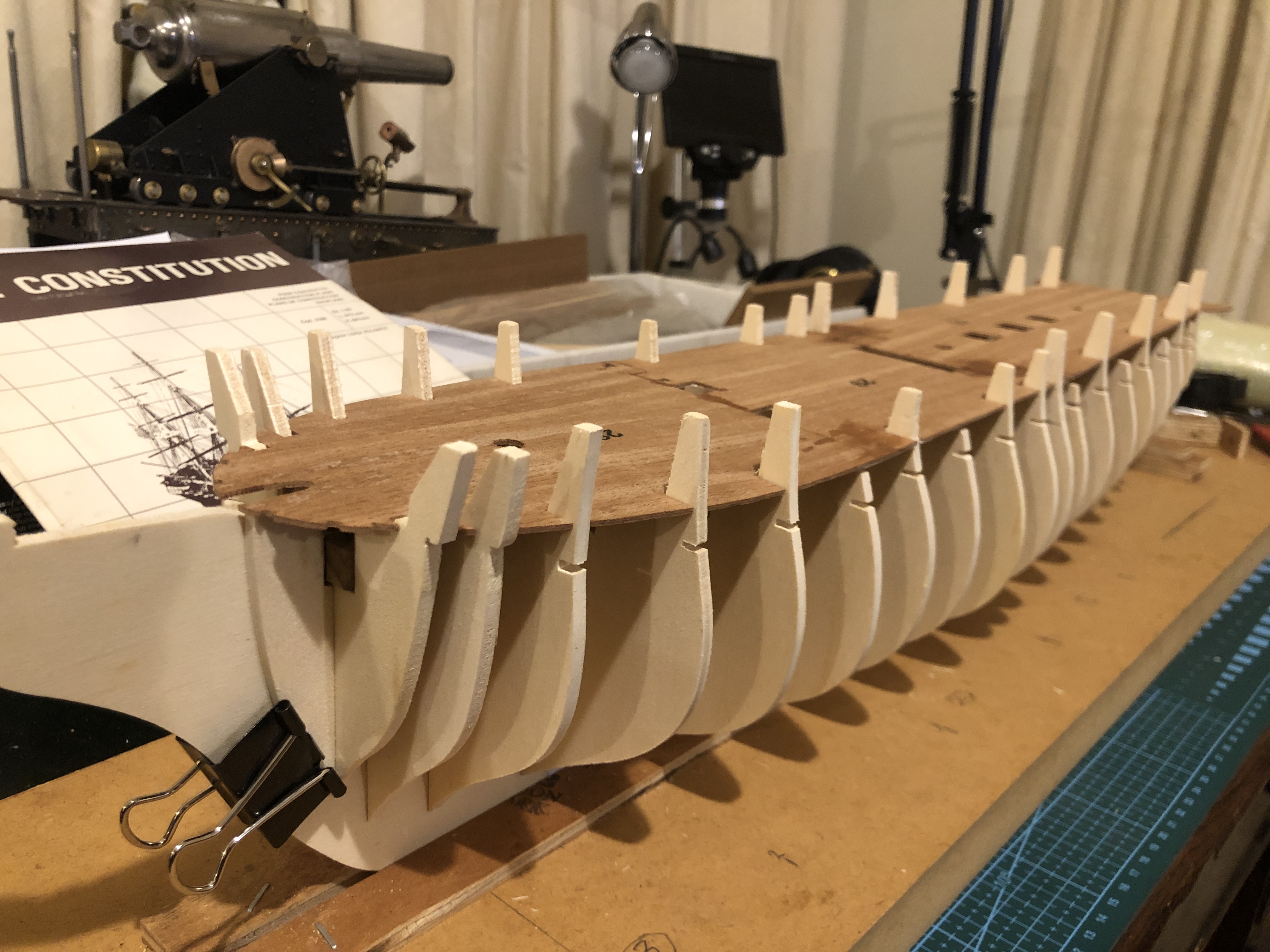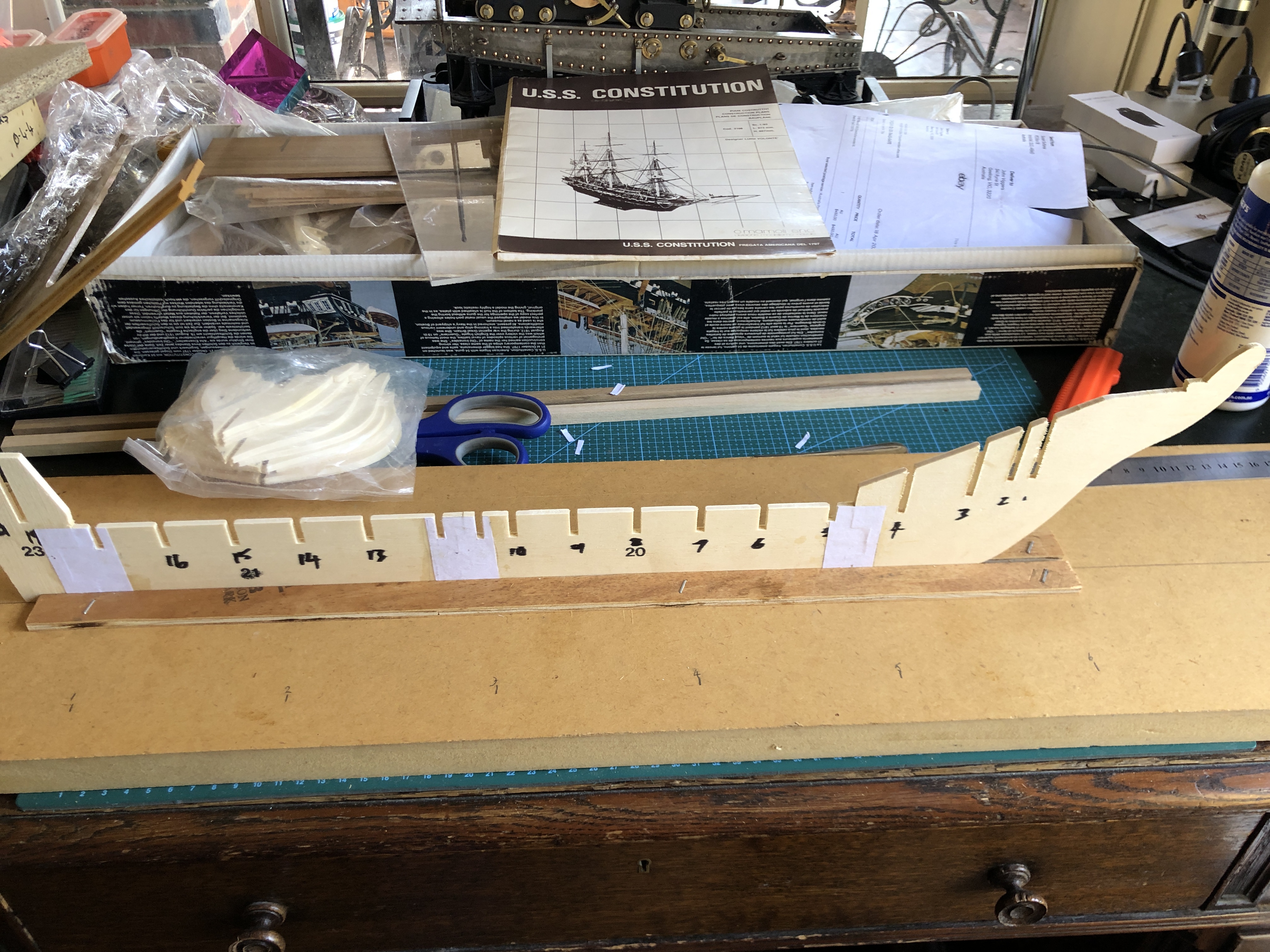 This evening, after the unboxing, I could not wait any longer. I had read several books about model shipbuilding, and watched numerous YouTube videos, and read the fairly detailed instructions accompanying the Mamoli USS Constitution kit.